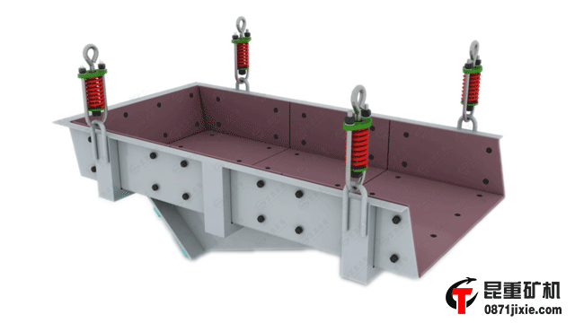 昆重礦機生產的電磁振動給料機結構簡單,操作方便,無旋轉部件,不需潤滑,給料比較均勻,給礦量方便調節,多用于粒度為0.6至500毫米的松散物料。電磁振動給料機振幅小,頻率高,但對粘性濕物料易使槽底結料,破壞基本工作參數,此種情況下不易采用。